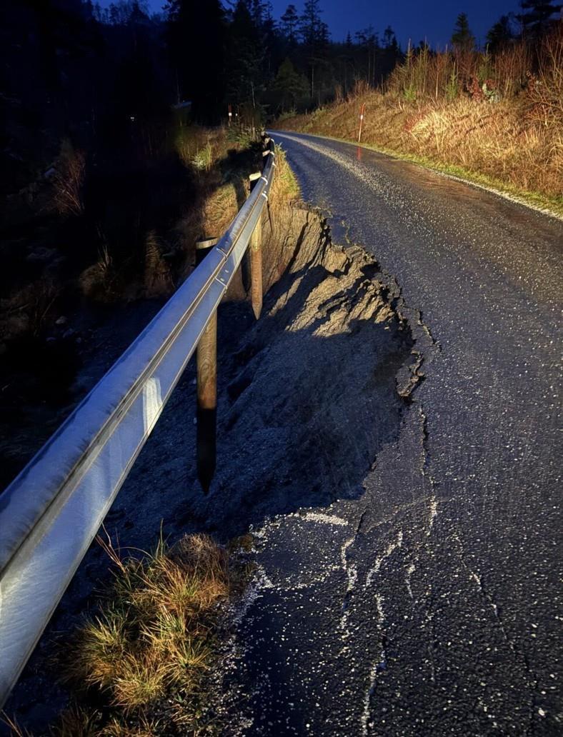Deler av vegen har rast utDette gjelder Hetlandsvegen.Vær obs! På dette punktet har vann tatt deler av vegen (se kartpunktet). Større kjøretøy kan ikke passere. Entreprenør er på vei, og det blir jobbet for å organisere kolonnekjøring for mindre kjøretøy. Publisert av Bjørn Egil Gilje Publisert 15.12.2025 09.28 Sist endret 15.12.2025 09.28