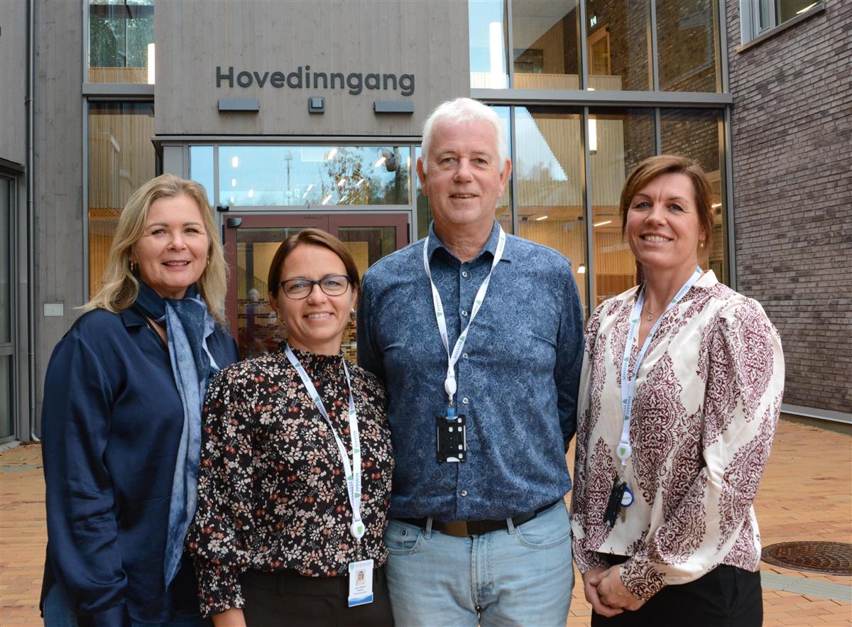 Kommunalsjef Eva Fagerheim, prosjektkoordinator Anne Gjedrem Friestad, Bjarne Tengesdal og Silje Birkeland Ege er fornøyde med flyttingen og helsesenteret.